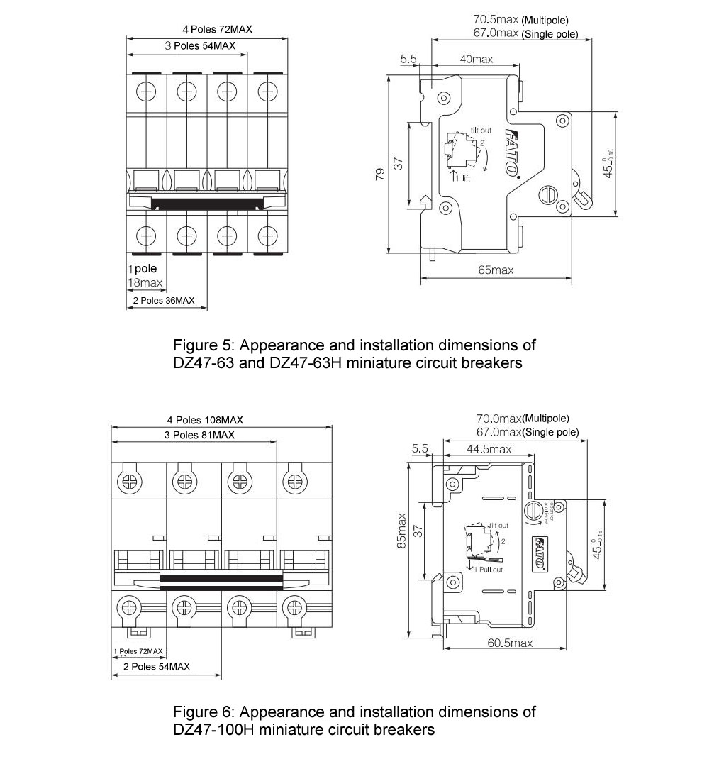 Le nouveau disjoncteur de circuit miniature de la série DZ47 convient à la surcharge et à la protection contre les courtes circuits des lignes, l'éclairage et l'équipement électrique en circuits avec AC 50Hz, une tension nominale de 230/400V et un courant évalué jusqu'à 100 A et moins. Il peut également être utilisé pour une commutation peu fréquente des lignes et des équipements dans des conditions normales.